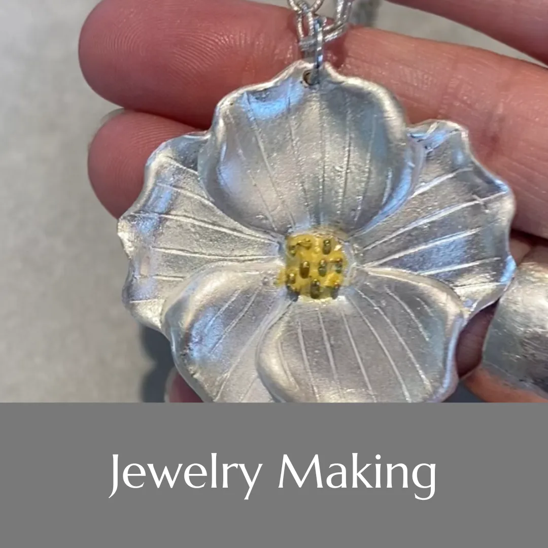 Each day, we gather outdoors to create. I bring all the supplies — wax carving, metal clay, and more — and you work on whatever calls to you. I'm there to guide and show you techniques as you go, but this isn't rigid instruction. It's relaxed, intuitive, joyful creation.